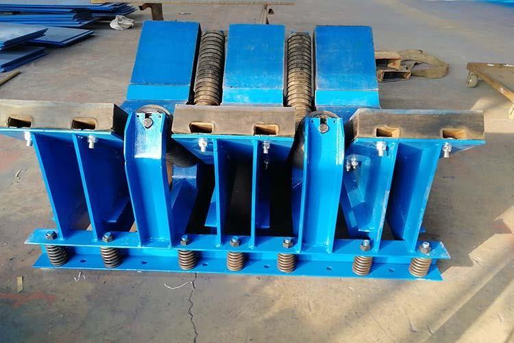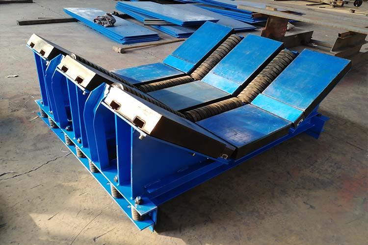 皮帶機(jī)緩沖床主要用于皮帶機(jī)導(dǎo)料槽下方的落料口處,當(dāng)物料下落時(shí),緩沖床利用自身彈性對(duì)物料下落到皮帶上的沖擊力進(jìn)行處理,使沖擊力達(dá)到很小,以保證皮帶機(jī)正常運(yùn)行。皮帶機(jī)緩沖床的表層緩沖條擁有五百萬分子量的高分子聚乙烯板面,該高板于皮帶呈面面接觸,使?jié)櫥赃_(dá)到很高,摩擦系數(shù)降至很低。