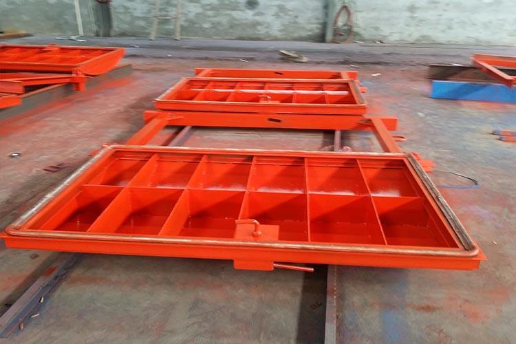 抗沖擊波密閉門用于井下爆炸材料庫和爆炸材料發(fā)放硐室,起隔離作用阻止爆炸沖擊波及爆炸產(chǎn)生的火焰、有毒氣體向外部巷道擴(kuò)散,由總回風(fēng)道排出,抗沖擊超壓能力為2500kpa??箾_擊波密閉門不但有抵抗沖擊波的能力,還具有通過活門張開的角度大小來調(diào)節(jié)庫房通風(fēng)量的作用,庫房內(nèi)發(fā)生火情時,關(guān)閉通風(fēng)孔起隔離作用,可以說是一舉兩得的好門。
