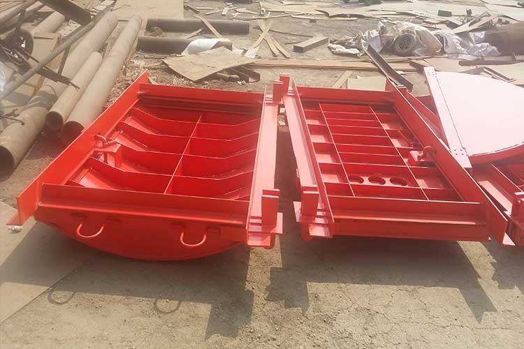 抗沖擊波活門與密閉門組合使用,安裝在炸藥庫兩邊配合使用,通風(fēng)活門組分為3組,使用時(shí)可根據(jù)井下材料庫需要風(fēng)量和總回風(fēng)道負(fù)壓值,確定通風(fēng)活門組數(shù),抗沖擊超壓能力為2500Kp??箾_擊波活門用于井下爆炸材料庫和爆炸材料發(fā)放硐室,起隔離作用阻止爆炸沖擊波及爆炸產(chǎn)生的火焰、有毒氣體向外部巷道擴(kuò)散。